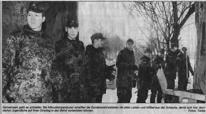 Rehm-Rehde-Bargen - Ein eiskalter Schneesturm fegt um die Scheune. als die 20 Bundeswehrsoldaten ankommen. Freiwillig haben sie angeboten, den Gebäudeteil für einen guten Zweck zu entrümpeln.